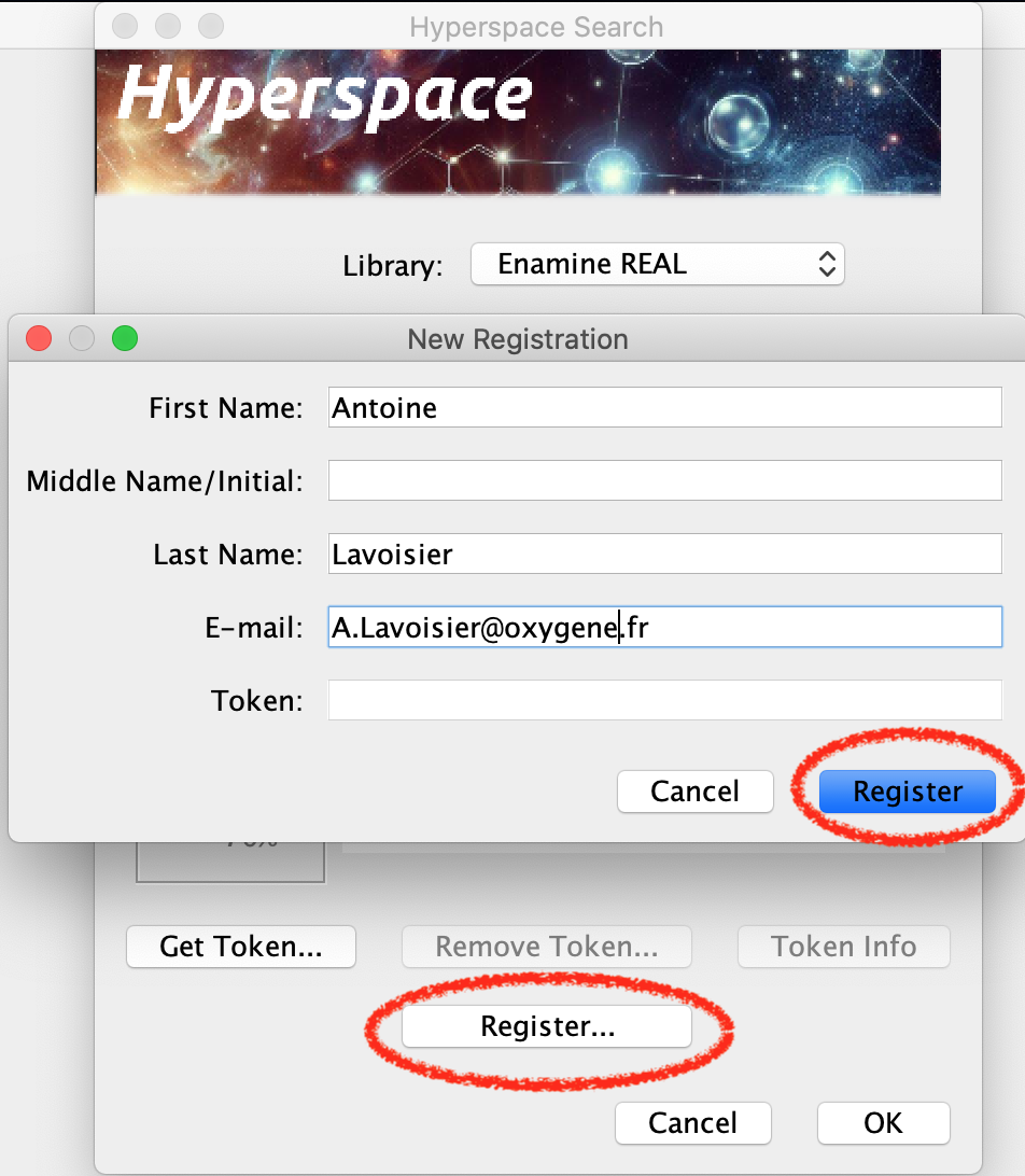 - Enter the pass code in DataWarrior's dialog and that's it! You can start searching! Under the hood you have received a token connected to your e-mail address that is stored locally on your computer and used in the future as access key for Hyperspace searches.