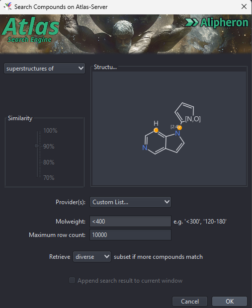 - Structure searches can be combined with vendor limitations and molecular weight ranges